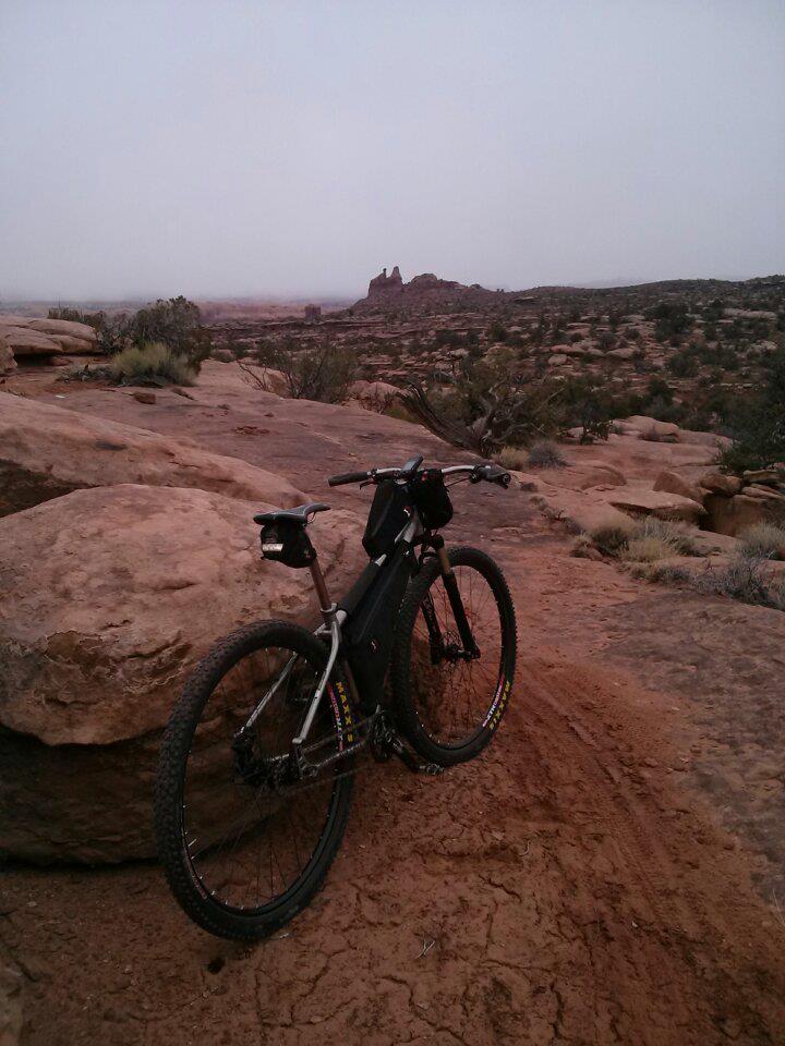 With the weather looking adverse for the Sedona Big Friggin Loop (which was cancelled) I decided to head over to Moab. TR was supposed to go but bailed on his birthday weekend and opted to stay home. Oh well, he missed out. I rode the fat bike from town on Friday and rode some of the Brand Trails and over to Klonzo Trails via Sovereign ATV track and back the same way. The new Klonzo trails were finished in December and are a fun singletrack combo of trails past the Sovereign TH on Willow Springs Road. I encountered a few rain drizzles but nothing major to ruin the days ride.